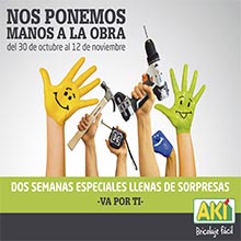 Entre ellas se encuentra la organización de talleres especiales en las tiendas de AKI donde -los viernes 3 y 10 de noviembre y los sábados 4 y 11 de noviembre- el objetivo es participar en una buena causa y acercar el bricolaje de una forma sencilla a los clientes. Además, según informan, los productos que se fabriquen en estos talleres se venderán en un mercadillo solidario y todo lo que se recaude se donará a la asociación colaboradora.