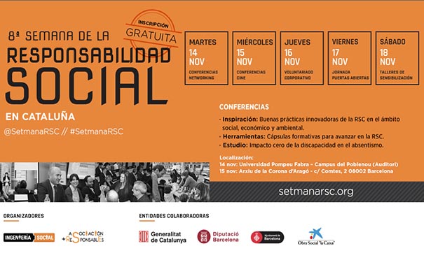 La 8ª edición de la Semana de la Responsabilidad Social en Cataluña, organizada por Ingeniería Social S.A.L. y la Asociación +Responsables, se inaugura hoy en el auditorio del campus de Poblenou de la Universitat Pompeu Fabra, donde participarán las principales instituciones de Cataluña.