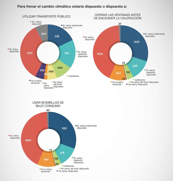 En este sentido, los resultados de la encuesta revelan que la ciudadanía es bastante crítica consigo misma y en torno al 70% está dispuesta a adoptar medidas que contribuyan a mejorar el cambio climático, y prácticamente el 90% de las personas encuestadas se manifiestan abiertas a reducir su consumo de energía en alguna medida.