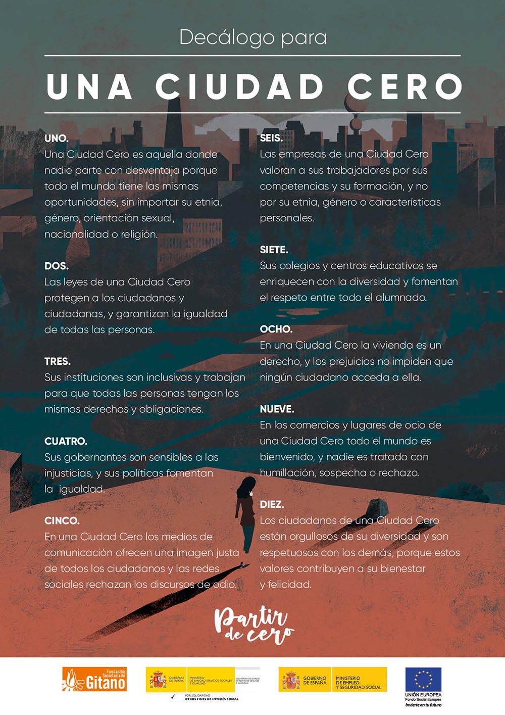 Esta campaña de sensibilización tiene otro elemento esencial, el cuento #PartirDeCero, escrito por Màxim Huerta e ilustrado por Carlos Salgado. Asimismo, la Fundación ha lanzado el Decálogo para una Ciudad Cero para, entre todos, "conseguir construir una sociedad en la que nadie parta con desventaja".