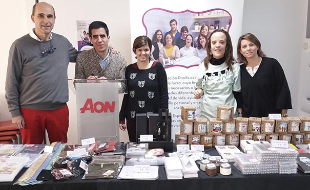 Las oficinas de Aon en Madrid han acogido un mercadillo solidario organizado por Fundación Prodis -la cual ayuda a inserción laboral de personas con discapacidad intelectual- en el que los empleados de Aon han podido conocer y adquirir los productos realizados por los jóvenes del Centro Especial de Empleo (CEE) de la Fundación, cuyo objetivo es proporcionar un trabajo digno y remunerado a jóvenes con capacidades diferentes, acompañados y apoyados por mediadores laborales y profesionales que comparten este fin de inserción laboral y social.