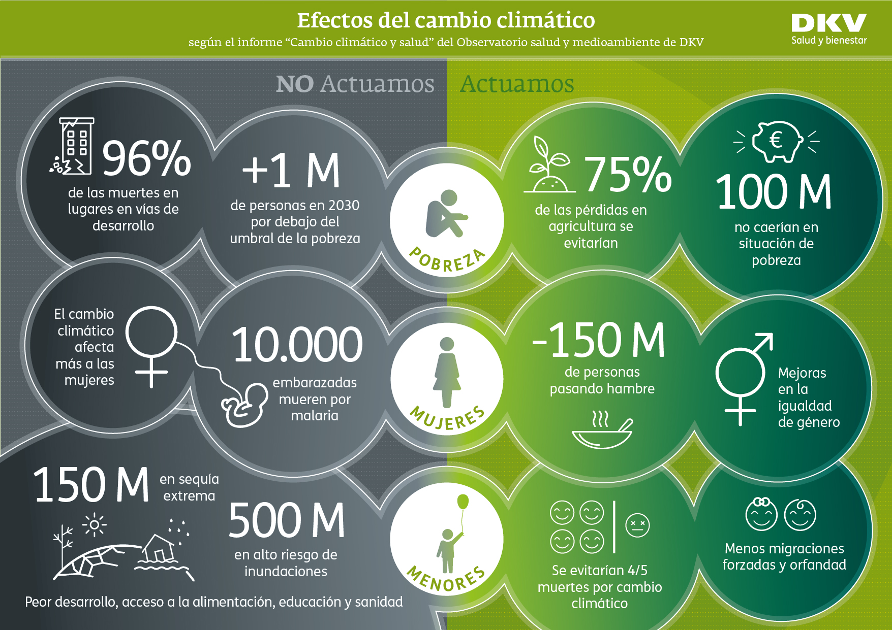 El informe explica el impacto del cambio climático en la salud y su relación con la pobreza, la equidad de género y la infancia, abordando sus consecuencias sociales negativas y revisando las acciones necesarias para hacer frente a estos impactos. Unas consecuencias que afectan en mayor medida a niños y mujeres.