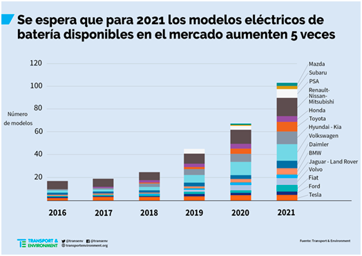 La estrategia de los fabricantes para cumplir con los objetivos 2021 es aumentar las ventas de vehículos eléctricos de batería e híbridos enchufables, y es probable que aumenten su cuota de mercado en Europa de manera significativa al 5-7% para 2021, según el informe. Pero el análisis muestra que los fabricantes también están retrasando el lanzamiento de nuevos vehículos enchufables hasta el último momento posible. Actualmente, solo hay 20 coches eléctricos con batería a la venta, pero se espera que en el 2021 aumente a más de 100 si las empresas cumplen con sus promesas.