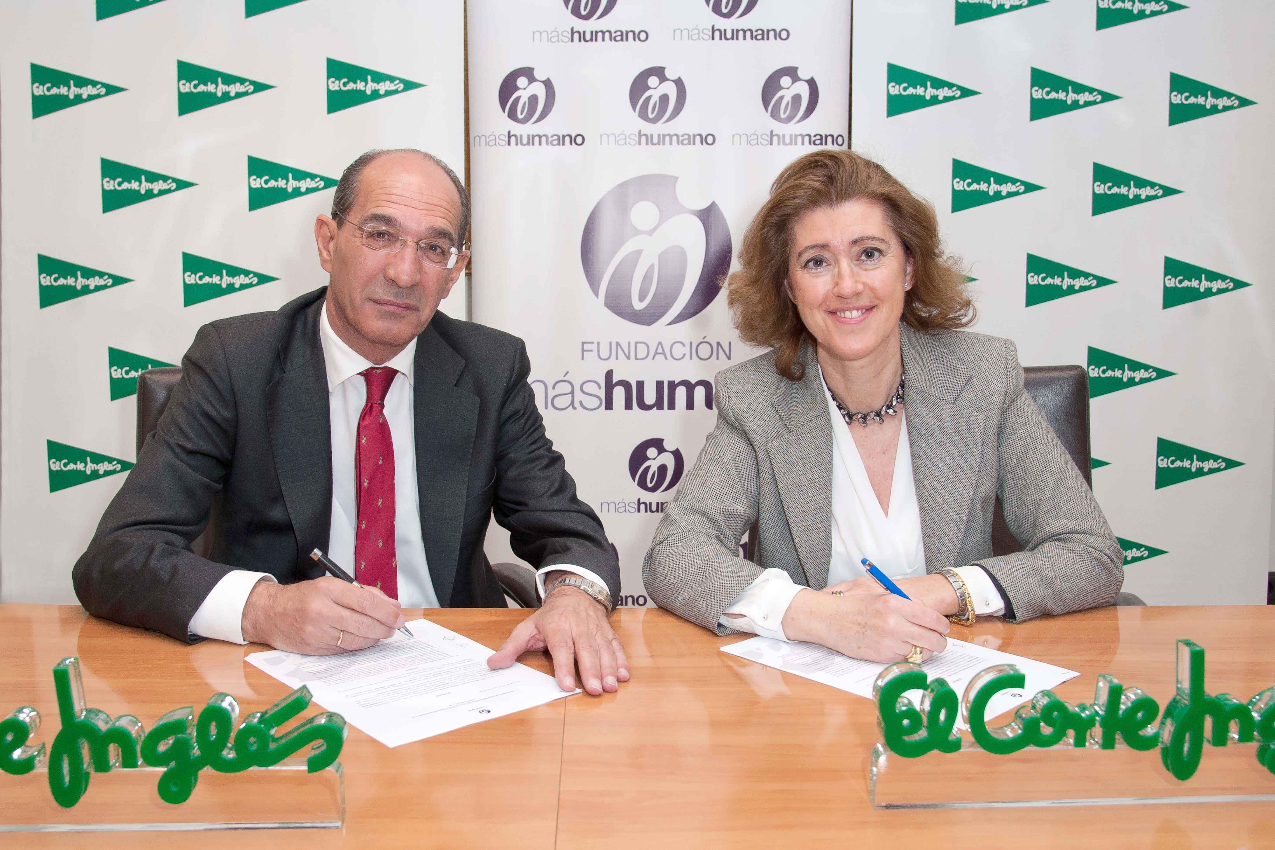 La presidenta de Fundación máshumano, María Sánchez-Arjona, y el director de Comunicación y Relaciones Institucionales de El Corte Inglés, José Luis Gonzalez-Besada, ha firmado este acuerdo y coinciden en destacar la relevancia del “Premio máshumano” como apuesta por el talento joven para impulsar la trasformación hacia una sociedad y un mundo más humano.