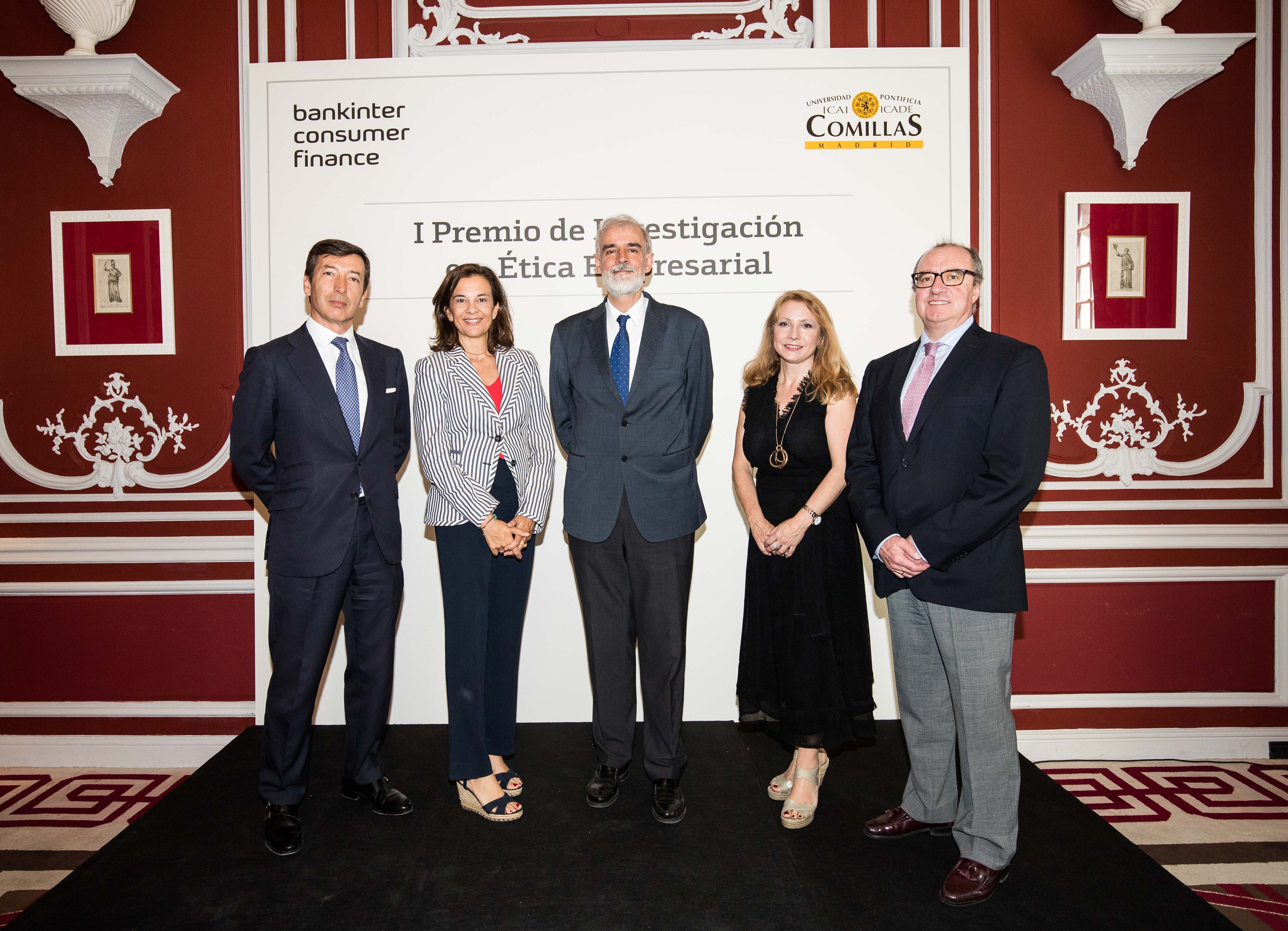 El jurado ha estado compuesto por Alfonso María Saez Alonso-Muñumer, Consejero Director General de Bankinter Consumer Finance; José Antonio Barberá García, ejecutivo senior de Sostenibilidad de Bankinter; Almudena Rodríguez Beloso, directora de Responsabilidad Social Corporativa y Medio Ambiente de Accenture; Inés Gomis Bertrand, socia directora de Temple Asesores; Javier Camacho Ibáñez, consultor de empresa y miembro de la Cátedra de Ética Económica y Empresarial de Comillas ICADE; Javier Fuertes López, profesor de Ética y Responsabilidad Social Empresarial en Comillas ICADE; Juan Benavides Delgado, catedrático de Comunicación de la Universidad Complutense de Madrid, y Fernando Velasco Fernández, profesor de la Universidad Rey Juan Carlos y director de la Cátedra de Servicios de Inteligencia y Sistemas Democráticos, los cuales han sido los encargados de elegir el trabajo ganador, así como el accésit.