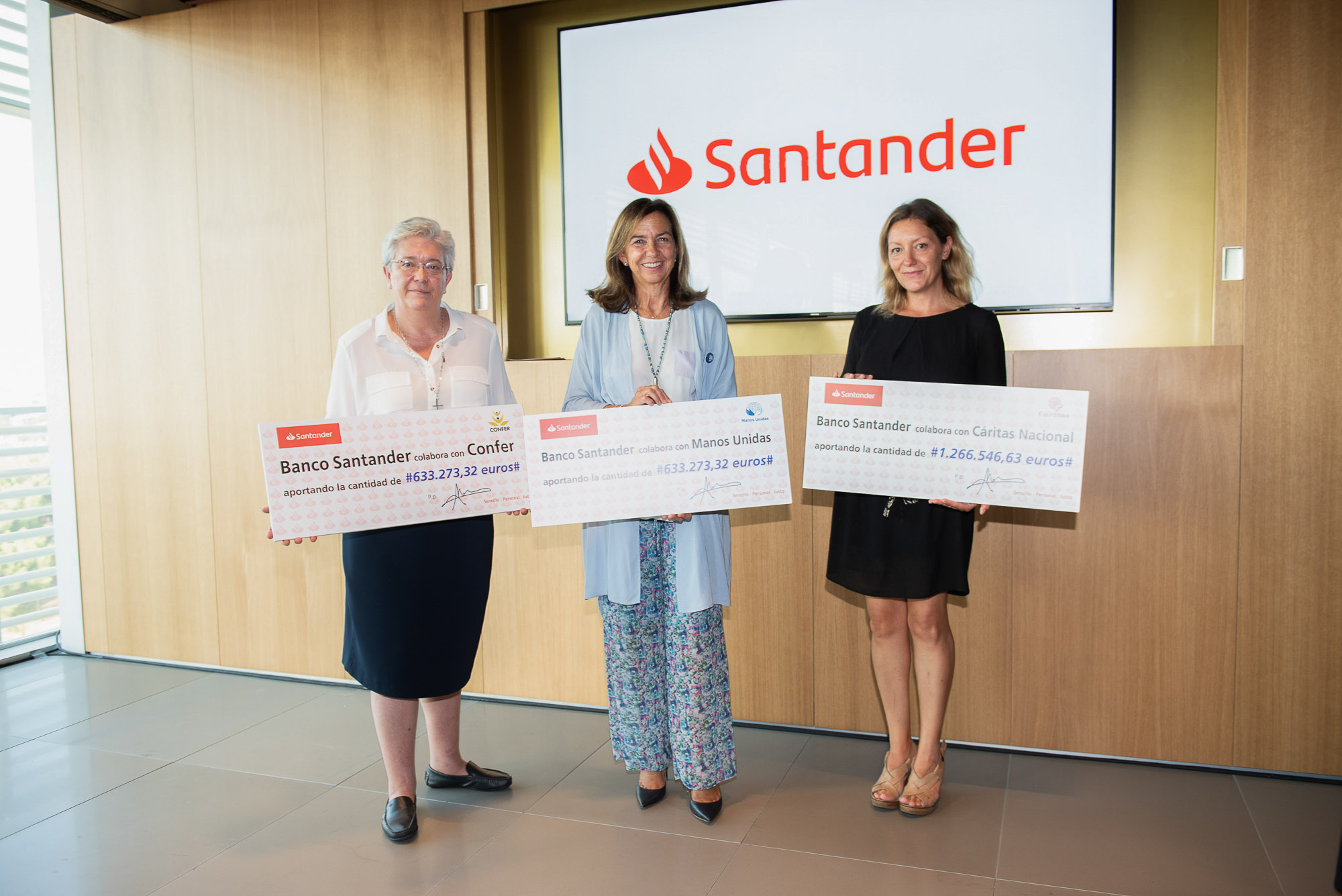 El evento, celebrado en la nueva sede de Santander España, contó con la asistencia del cardenal Carlos Osoro, arzobispo de Madrid; el vicesecretario de Asuntos Económicos de la Conferencia Episcopal Española (CEE), Fernando Giménez Barriocanal, así como el presidente de Santander España, Rodrigo Echenique; el consejero delegado de esta entidad, Rami Aboukhair; el consejero delegado de SAM España, Lázaro de Lázaro, y los máximos responsables de Cáritas, Manos Unidas y Confer (Conferencia Española de Religiosos).
