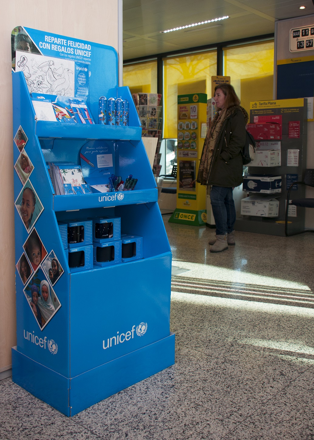 CORREOS es aliada estratégica de UNICEF desde hace más de 40 años, y colabora también en la comercialización de sus tarjetas y regalos a través de sus oficinas. De esta forma, se ha convertido en uno de los principales canales de distribución de sus tradicionales tarjetas en todo el territorio nacional.