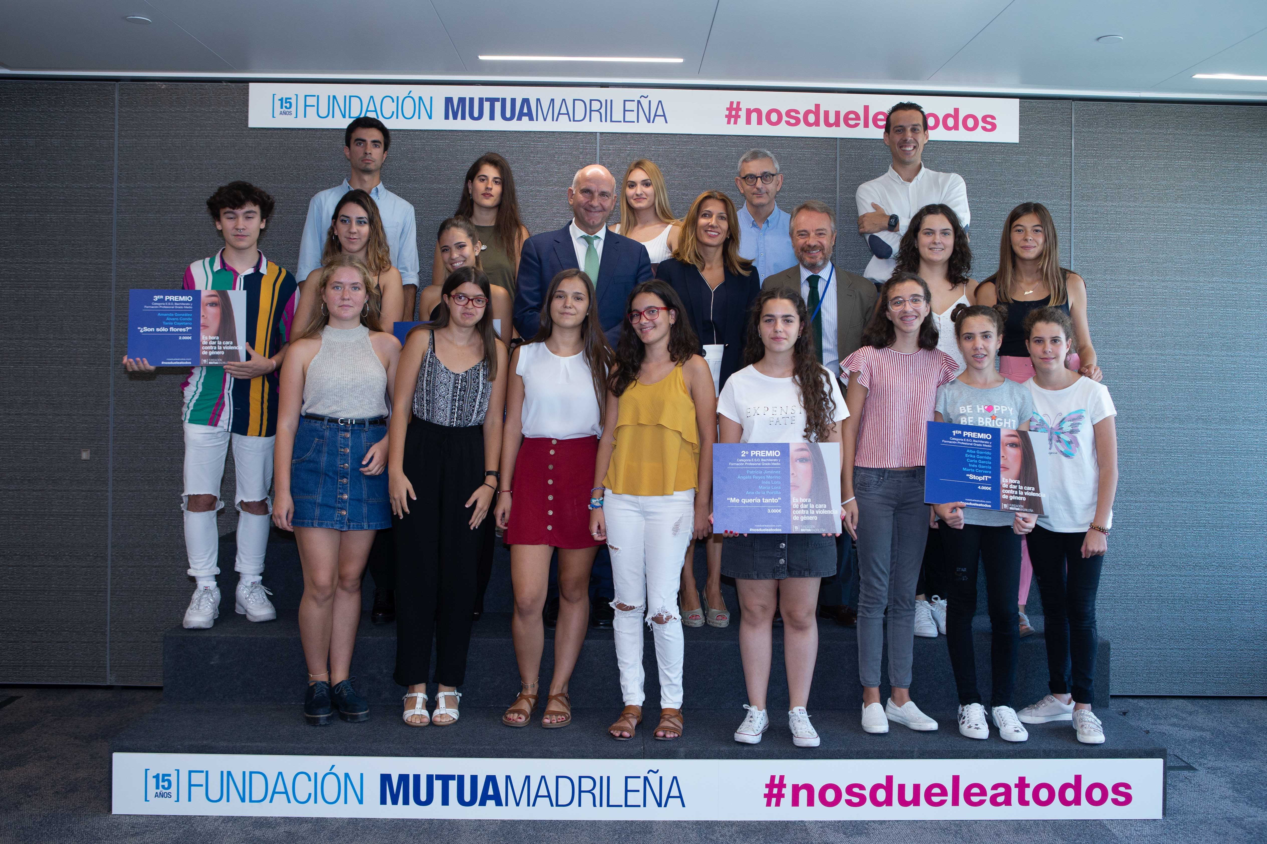 En la última edición del certamen #Nosdueleatodos se presentaron más de 750 proyectos de 450 centros educativos de ESO, Bachillerato, FP, universidades y escuelas de posgrado de toda España, lo que supuso que se duplicara la participación con respecto a la edición del año anterior, confirmando la buena acogida de la iniciativa año tras año. Los proyectos ganadores fueron, en la categoría de enseñanzas medias, “Stop It”, una iniciativa para la creación de una app móvil que ayude a las víctimas y su entorno a denunciar los casos de violencia de género y el video de animación “Todos somos responsables” en la categoría universitaria. Además, el cortometraje ¿Son sólo flores? Obtuvo el premio al proyecto más popular en redes sociales y en la categoría especial “Tolerancia Cero”.