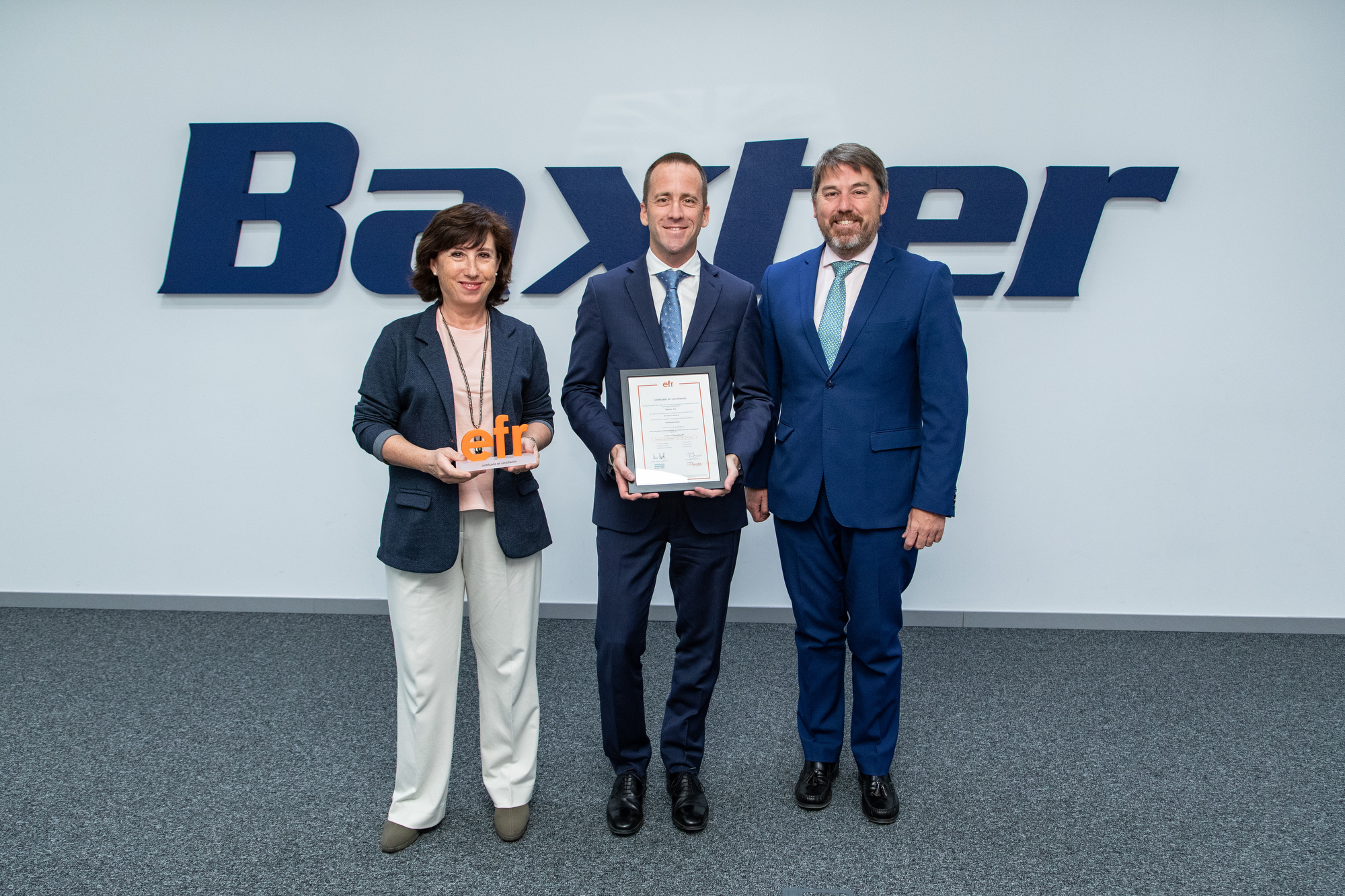 Durante la entrega, Fuertes comentó: “Desde Fundación Másfamilia estamos muy orgullosos de Baxter. Ya son nueve años comprometidos con el certificado efr. Baxter demuestra su entrega a la hora de gestionar todos los temas con las personas y la conciliación, de cara a conseguir ayudar a los colaboradores, conocer su realidad y ser una empresa más productiva alineada a los tiempos que corresponden”.
