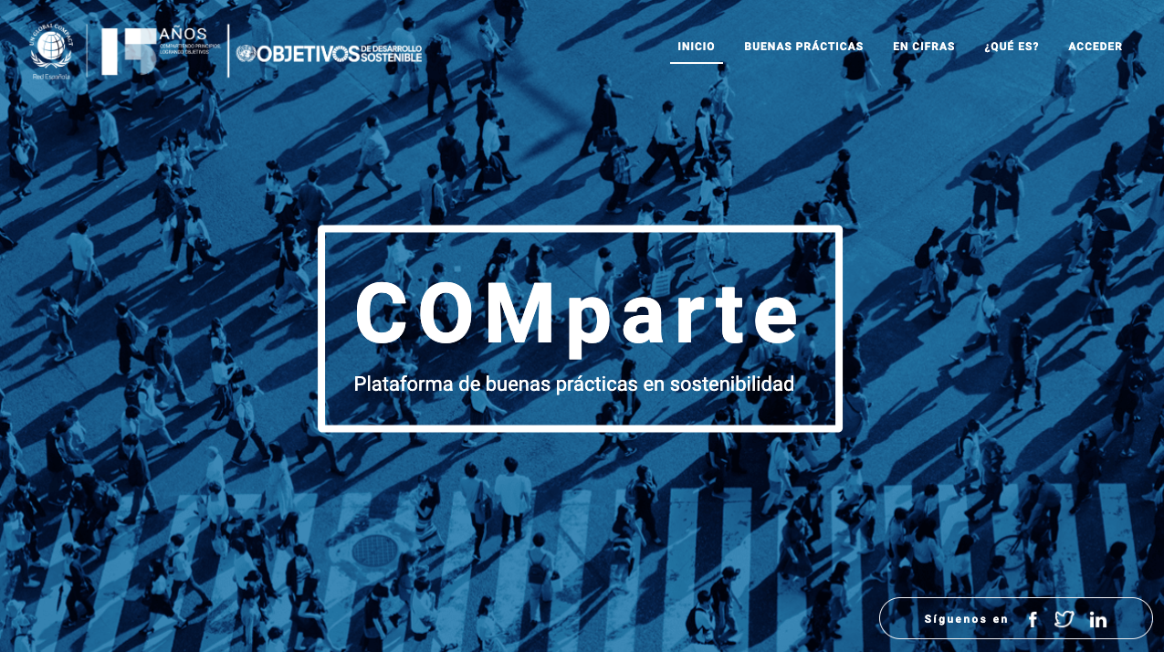COMparte es una plataforma abierta que recoge información de los miembros de la Red Española del Pacto Mundial, en especial de sus socios, que serán los encargados de publicar sus acciones más destacadas en materia de sostenibilidad. Permite la participación comunitaria dado que los firmantes también pueden votar las prácticas que consideren más relevantes y que aparecerán en un ranking de las más populares. Las soluciones pueden ser consultadas por todos los públicos.