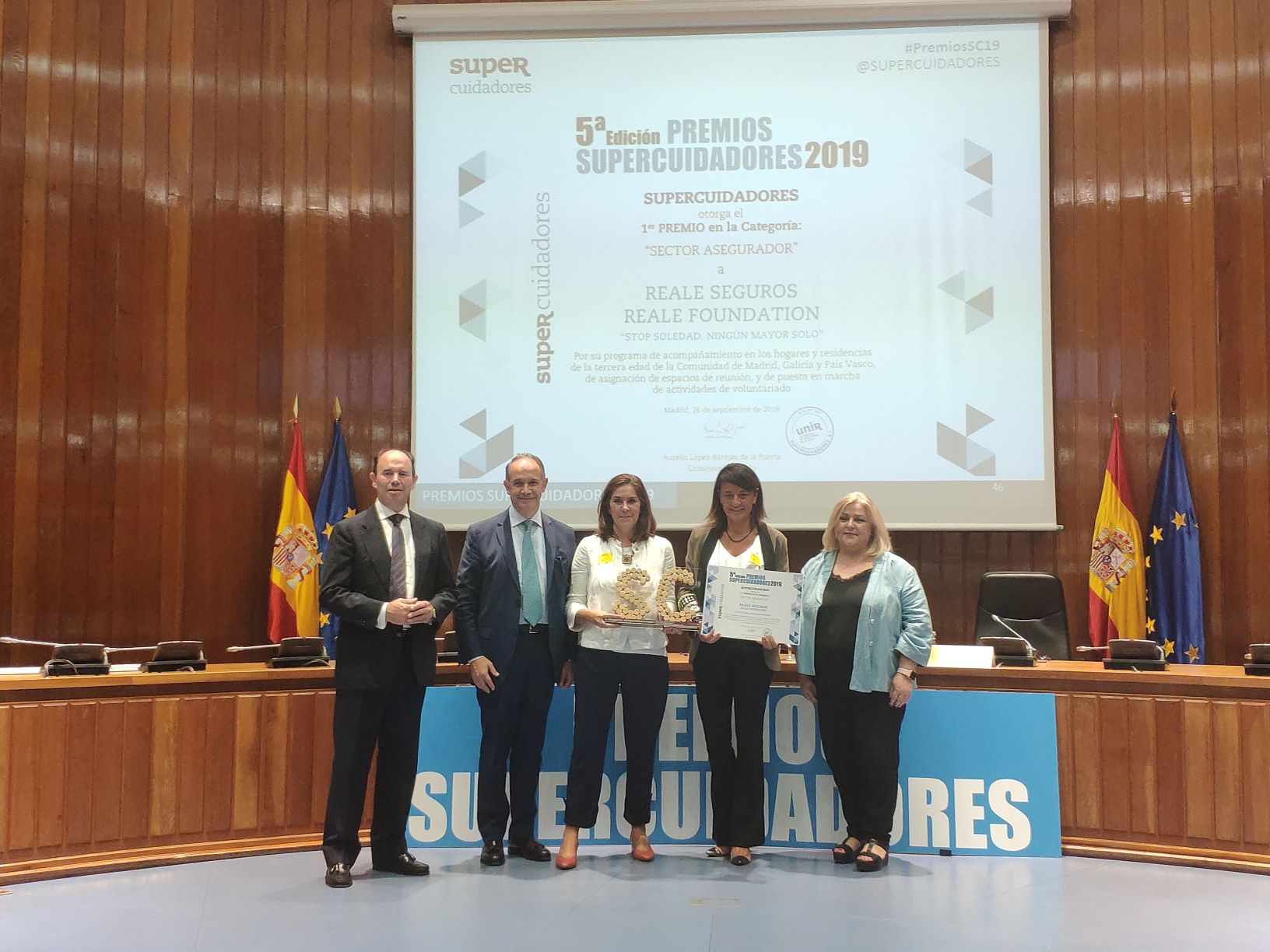 El premio fue entregado por Ana Lima, secretaria de Estado de Servicios Sociales, y lo recogieron Pilar Suárez-Inclán, responsable de Reale Foundation en España, y Arancha Escalada, responsable de RSE, en nombre de todos los voluntarios que han colaborado con esta organización a lo largo de los últimos años.
