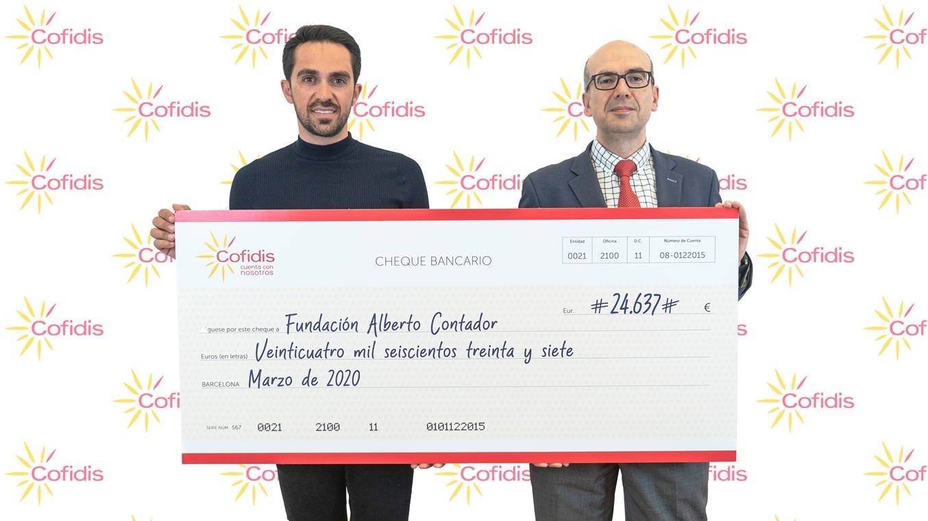 El acto de entrega del cheque, celebrado en Madrid, contó con la asistencia de Manuel Fernández, director de Relación Cliente de Cofidis España, y de los responsables de la Fundación Alberto Contador, el ciclista de Pinto y vencedor de Giro, Tour y Vuelta, Alberto Contador, y su hermano Fran Contador. La Fundación destinará el importe tanto al desarrollo de programas de ciclismo adaptado como a la adquisición de material específico para la práctica de este deporte entre personas con discapacidad.