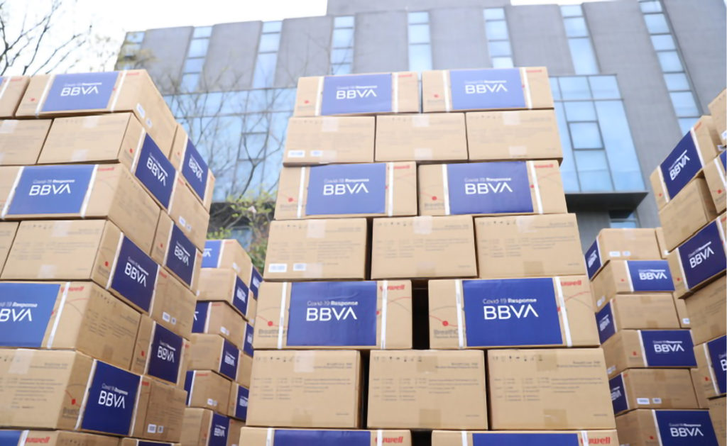 De manera coordinada con otras empresas españolas, BBVA está intentando conseguir respiradores adicionales y más equipamiento necesario para hacer frente a la situación actual, incluyendo tests para la detección del coronavirus y equipos de protección individual (EPIs) para el personal sanitario como buzos, guantes o gafas.
