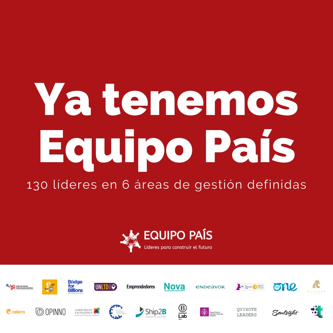 “Ante los grandes retos sanitarios, económicos, sociales y tecnológicos que tenemos ante nosotros, necesitamos el mejor talento para asegurar un desarrollo sostenible, inclusivo y competitivo. Equipo País quiere tender puentes y servir de nexo entre ese talento de la sociedad civil y el sector público, y este listado de líderes es el punto de partida para iniciar esa labor”, señala Antonio Espinosa, uno de los promotores de Equipo País.