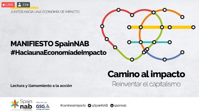 Tras la adhesión, en junio de 2019, de España al Global Steering Group for Impact Investment – GSG –, SpainNAB lanza el Manifiesto #HaciaUnaEconomíaDeImpacto, al que invitan a sumarse a la sociedad civil, a todas las organizaciones de la comunidad inversora, empresarial, al tercer sector y a la Administración Pública.