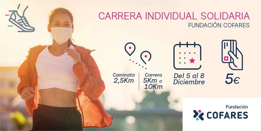 Con un coste de inscripción de 5 euros, abierta hasta el 7 de diciembre a través del enlace https://fundacioncofares.kinendu.com/, son tres las modalidades en las que se puede participar: caminata de 2,5 kilómetros y carreras de 5 o 10 kilómetros. La actividad realizada deberá registrarse en la app Kinendu, donde además cada participante podrá ver cuál es su puesto final en la clasificación.