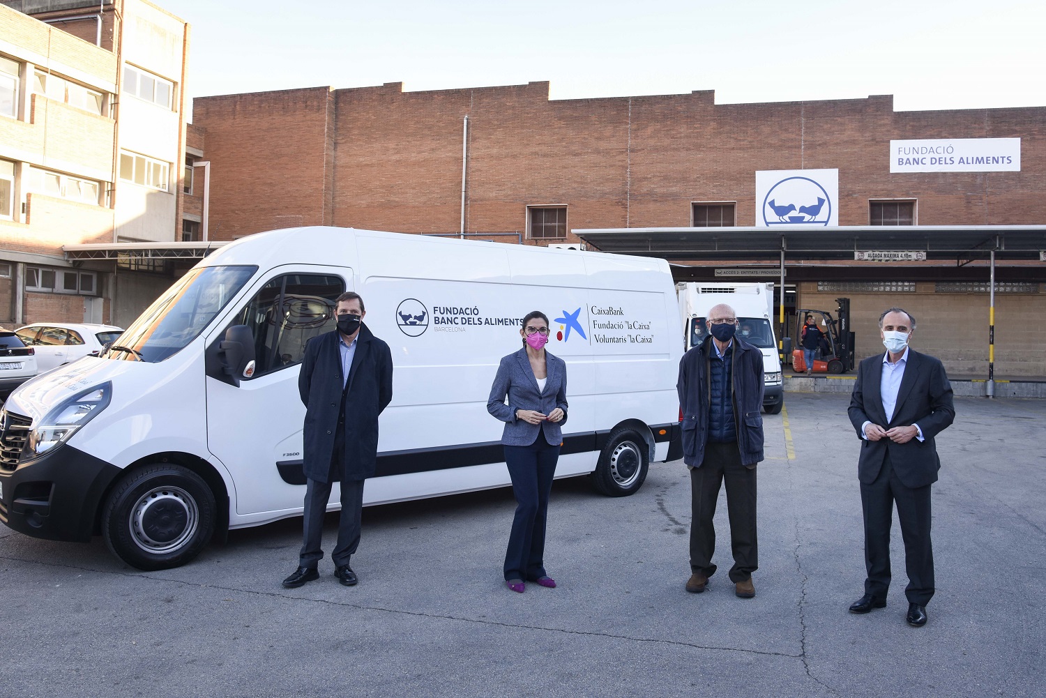 Al acto de entrega, que ha tenido lugar en Barcelona, han asistido Juan Gandarias, consejero delegado de CaixaBank Consumer & Payments, Maria Alsina, directora territorial de CaixaBank en Barcelona, Lluís Fatjó-Vilas, director del Banc dels Aliments, y Agustí Garcia, consejero delegado de Vallescar.