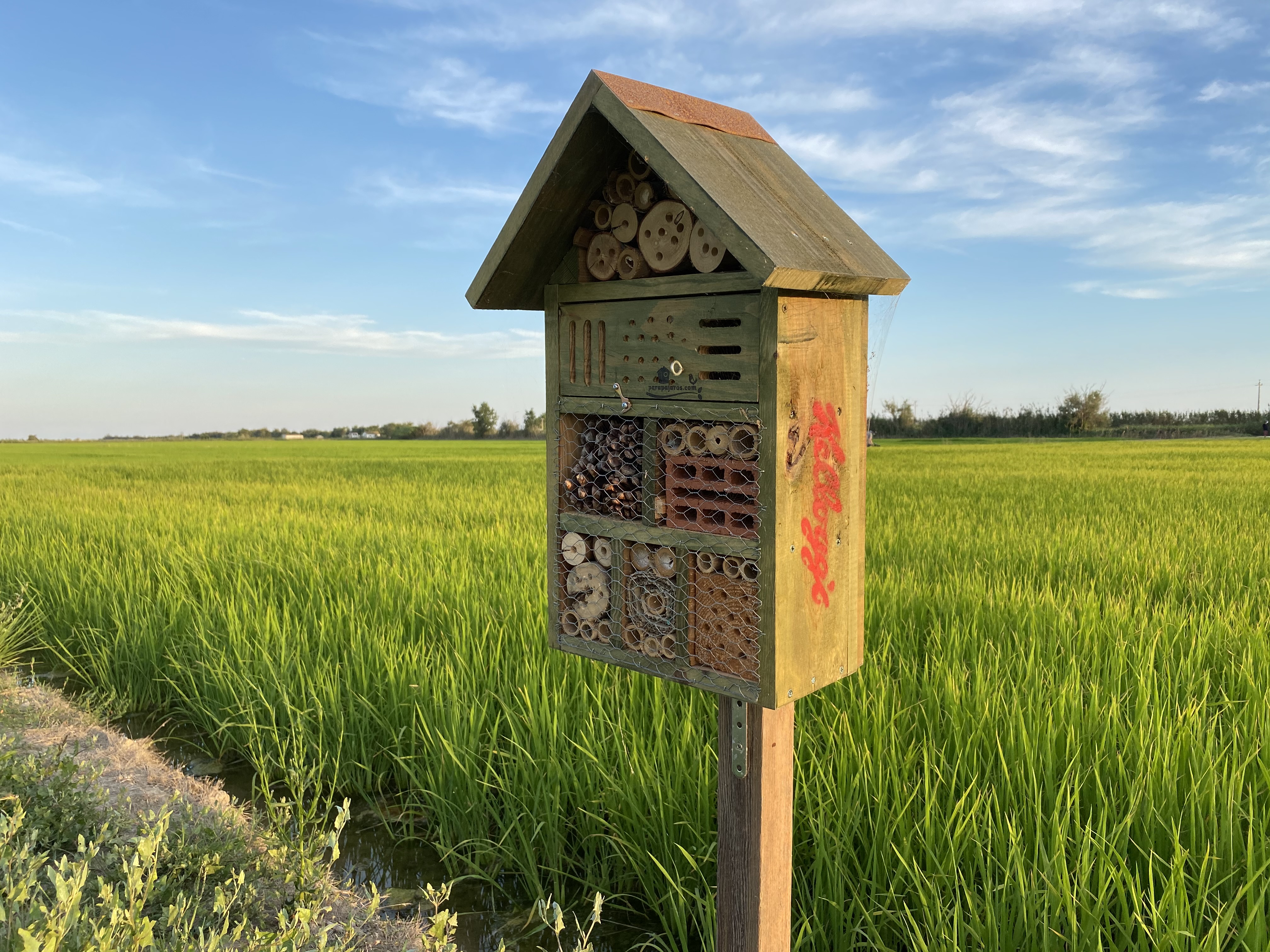 Entre estas medidas, se encuentran la instalación de hoteles de insectos para optimizar la presencia de aquellos que favorecen el ecosistema, la polinización y la biodiversidad. El objetivo es atraer insectos útiles para el cultivo de arroz creando refugios, hoteles, diseñados para acogerles. Asimismo, se está trabajando en la introducción de márgenes florales a través de la siembra de plantas nativas para fomentar la aparición de insectos y controlar las plagas.