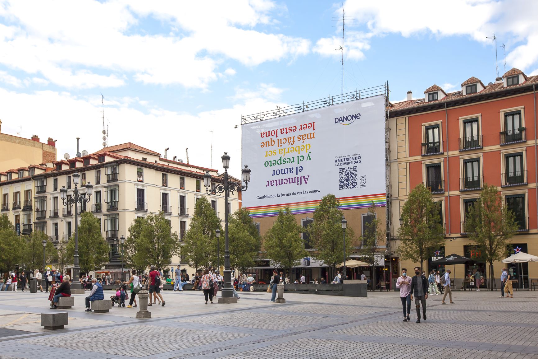 #NutriendoLaDiversidad incluye seis compromisos con los que la compañía pretende avanzar todavía más en sus políticas de diversidad inclusiva, de la mano de sus empleados, colaboradores y socios. La empresa ha instalado una lona en la plaza de Ópera de Madrid con dos objetivos: destacar que las diferencias entre las personas son lo que nos enriquece y promover una sociedad más igualitaria, respetuosa y justa que no deja a nadie atrás.