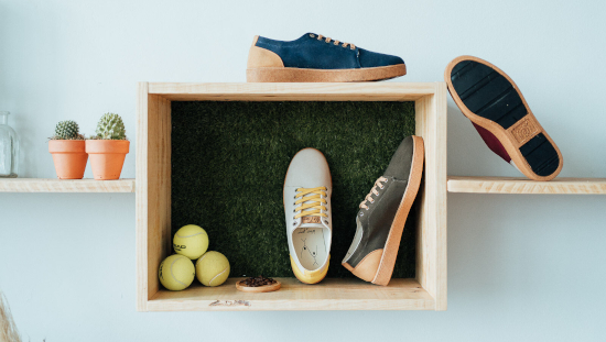 La joven empresa NoTime Eco Brand destaca por utilizar materiales reciclados para fabricar su colección de zapatillas. Desde café, pasando por neumáticos, corcho e incluso pelotas de tenis son algunos de los materiales empleados por No Time Eco Brand para sus diseños. A la originalidad en reciclar, se suma el hecho de que el 100% de la energía que utiliza esta empresa proviene de placas solares; al tiempo que el 20% de sus beneficios se destinan a proyectos que fomentan la inclusión social, convirtiéndose así en una compañía social 360.