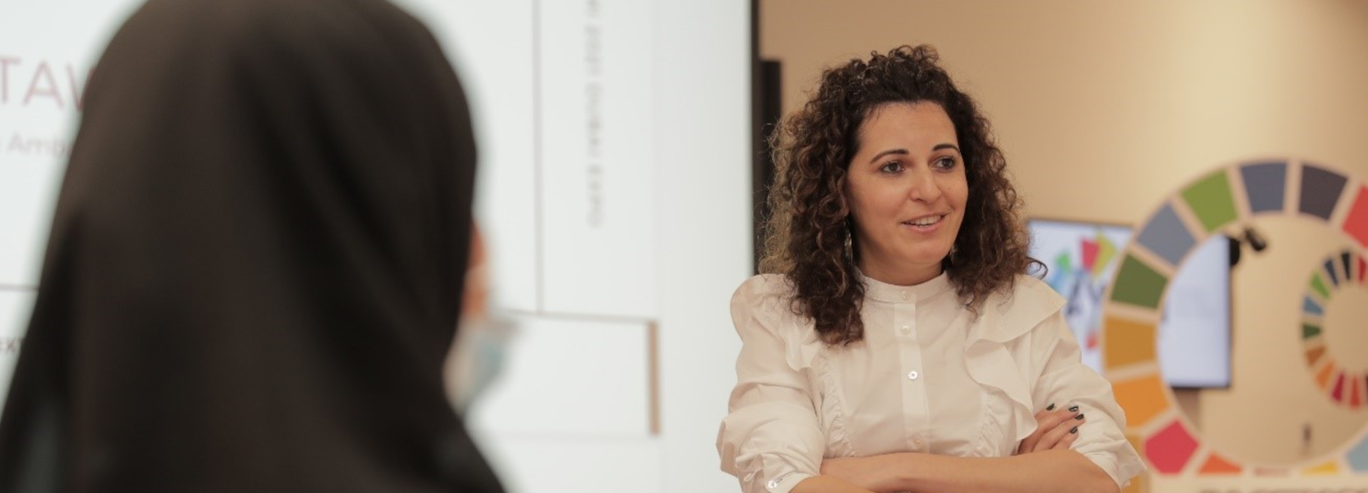 El taller de narración creativa tuvo lugar en el pabellón de la Oportunidad de la Expo 2020 de Dubai,fue un acto de colaboración organizado por la Iniciativa Juvenil de Arte y Música de la región árabe (AYAMI) dentro del marco del Programa de las Naciones Unidas para el Desarrollo de los países árabes.