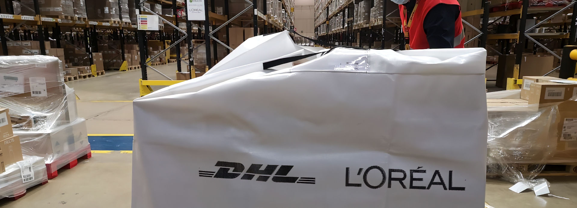 Una de esas iniciativas consiste en la utilización de nuevos elementos de enfardado de palets que eliminan el uso del film de plástico, usando en su lugar unas fundas reutilizables de rafia equipadas con correas de seguridad ajustables, que pueden ser reutilizadas hasta 1.000 veces. El innovador sistema de empaquetado, denominado Big-Belt, es una iniciativa pionera en España que ha sido introducida por DHL para la operación logística de L’Oréal España y Portugal.