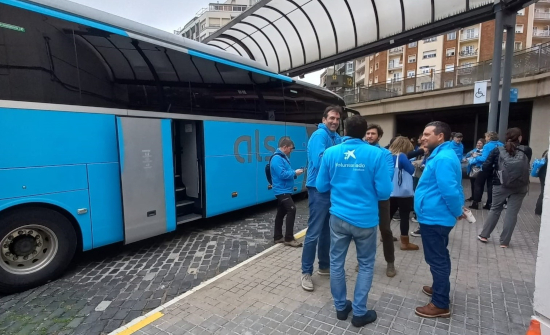 Un total de 10 autobuses, 4 vehículos de apoyo y un equipo de 50 personas, entre empleados de CaixaBank, voluntarios, traductores y personal sanitario, participan en la iniciativa, organizada en dos turnos.