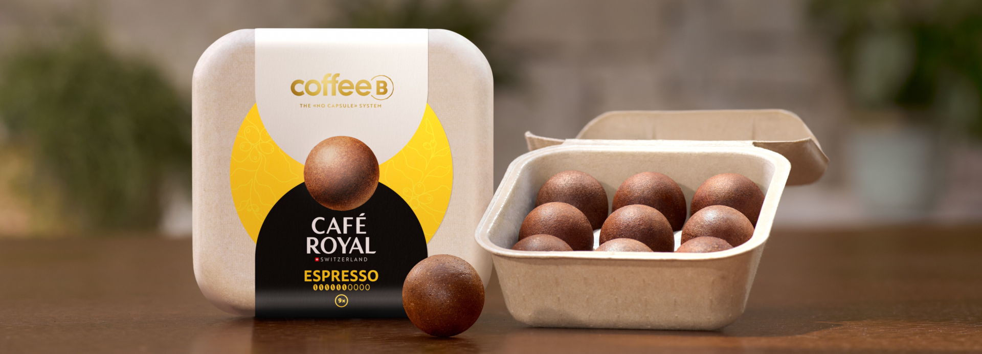 Con CoffeeB, Delica inicia la próxima gran revolución en el mercado del café 36 años después del lanzamiento de la cápsula de café. Presenta el primer sistema de cápsulas que no requiere ninguna cápsula. Esto es posible gracias a la "Coffee Ball": una pequeña bola de café prensado que está envuelta únicamente por una capa protectora de origen natural patentada mundialmente por Delica. Esto no sólo da estabilidad a la Coffee Ball, sino que también forma una barrera ideal contra el oxígeno que protege contra la pérdida de sabor, al igual que el aluminio. Al igual que el propio café, la capa protectora también es de origen natural y, por lo tanto, completamente compostable en el jardín. En pocas semanas, la Coffee Ball se descompone en un valioso humus. El sistema se completa con la cafetera CoffeeB Globe, con tecnología de preparación patentada. CoffeB ofrece una selección individual de variedades y diferentes niveles de potencia.