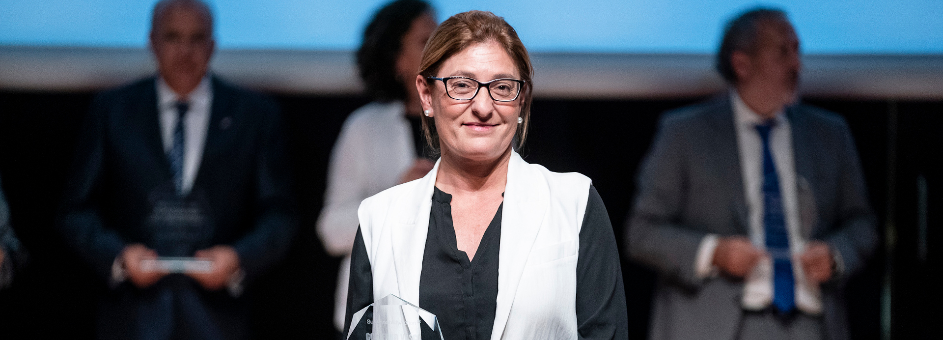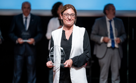 La directora de gabinete y comunicación del departamento de Desarrollo Económico, Sostenibilidad y Medio Ambiente, Larraitz Gezala Oyarbide, ha sidola encargada de subir al escenario y recoger el reconocimiento otorgado por CompromisoRSE en el Museo Reina Sofía de Madrid.