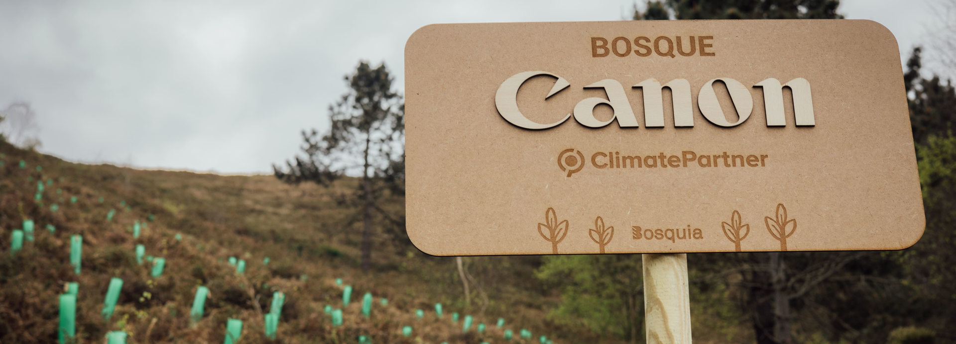 El Bosque crea una masa forestal de carácter protector empleando únicamente especies autóctonas como el abedul (Betula celtiberica) y el sauce (Salix atrocinerea), que proporciona servicios ecosistémicos de captura y almacenamiento de carbono, así como una mejora de la biodiversidad. En el terreno de una hectárea en el que se ejecutó la repoblación se han plantado un total de 2.080 árboles que, durante los próximos 35 años absorberán unas 1.077 toneladas de CO2. Durante este periodo Canon, a través de Bosquia -partner especializado en este tipo de proyectos de reforestación-, llevará a cabo todas las actuaciones silvícolas que sean necesarias para garantizar la perpetuación de la masa forestal.
