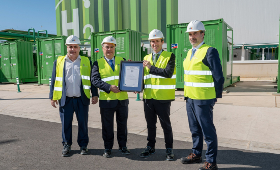 El certificado ha sido recogido por Ibán Molina, director de Hidrógeno Verde España de Iberdrola, y entregado por José Luis Moreno, director de Grandes Cuentas de AENOR, en un acto celebrado en la planta de hidrógeno verde de Iberdrola en Puertollano.