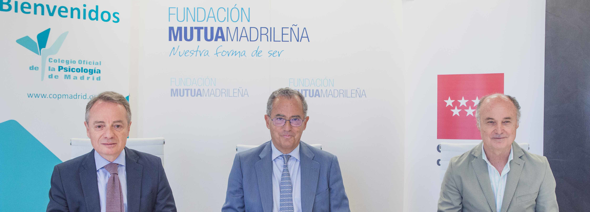 El vicepresidente de la Comunidad de Madrid y consejero de Educación y Universidades, Enrique Ossorio, ha participado en la firma del convenio de colaboración en la sede de la Fundación Mutua Madrileña, junto al decano del Colegio Oficial de la Psicología de Madrid, José Antonio Luengo, y el director general de la Fundación Mutua Madrileña, Lorenzo Cooklin.