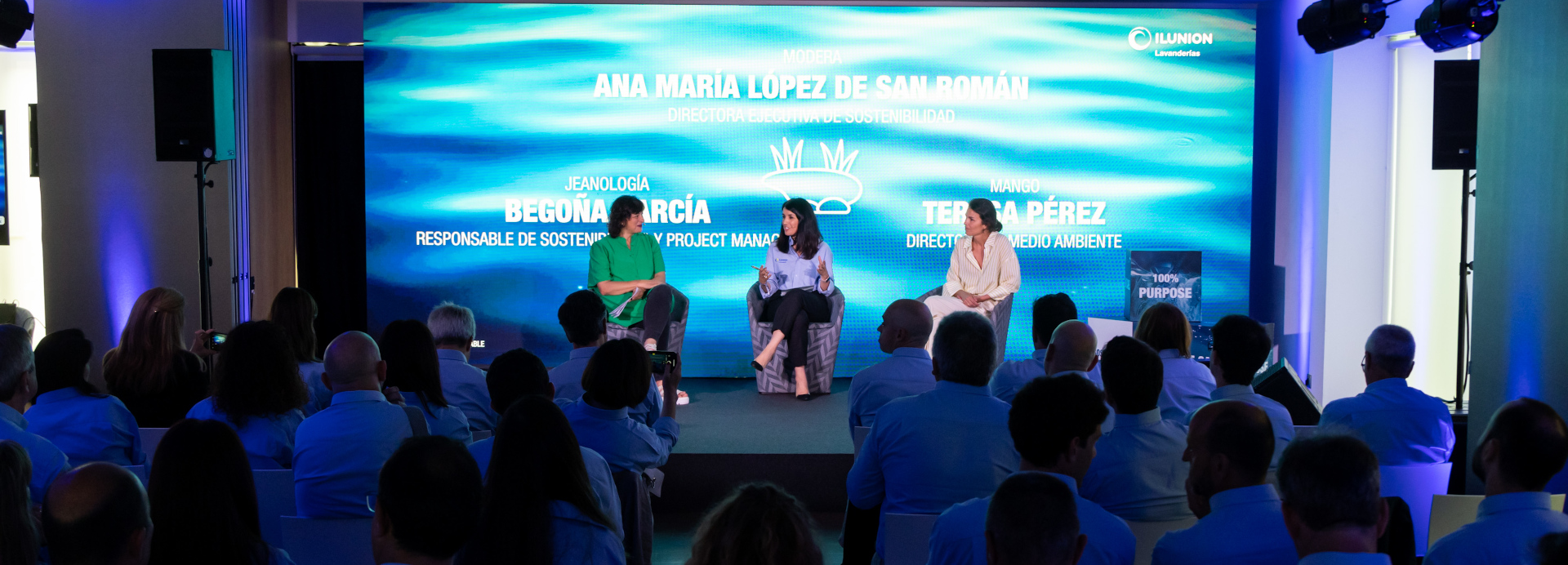 Como empresas líderes en sus respectivos sectores, ILUNION lavanderías, Mango y Jeanología se han reunido para compartir los grandes retos que plantea la sostenibilidad para sus empresas. Representantes de cada una de ellas participaron en la mesa redonda “La Sostenibilidad como motor de transformación”, celebrada en el hotel ILUNION Barcelona en el marco de las XLV Jornadas Directivas de ILUNION Lavanderías.