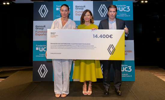 El Presidente de la Fundación Renault Group España, Carlos Menor, ha hecho entrega de 14.400€ a Pilar Otero, Vicerrectora de Estudiantes y Vicepresidenta de la Fundación Universidad Carlos III, en un acto que se ha llevado a cabo en la Sede de Renault Group en Madrid y que ha contado con la presencia de la diseñadora de la colección, Laura Ponte y del director de Impacto Social de Renault Group en España, Carlos Fraile.