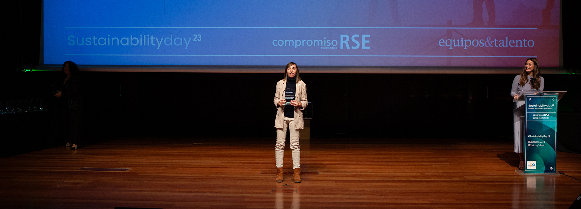 Patricia Sánchez, directora de Desarrollo de Fundación Teaming, fue la encargada de recoger el premio. Los reconocimientos Sustainability Actions 23 de CompromisoRSE son unos galardones que reconocen y ponen en valor las iniciativas y los proyectos llevados a cabo a lo largo de 2023 en materia de sostenibilidad, medio ambiente e inclusión social. Con el objetivo de premiar a los principales stakeholders del país, los premios se dividen en seis categorías: Administración Pública, Formación y Centros Educativos, ONG y Fundaciones, Organizaciones, Startups y Empresas.