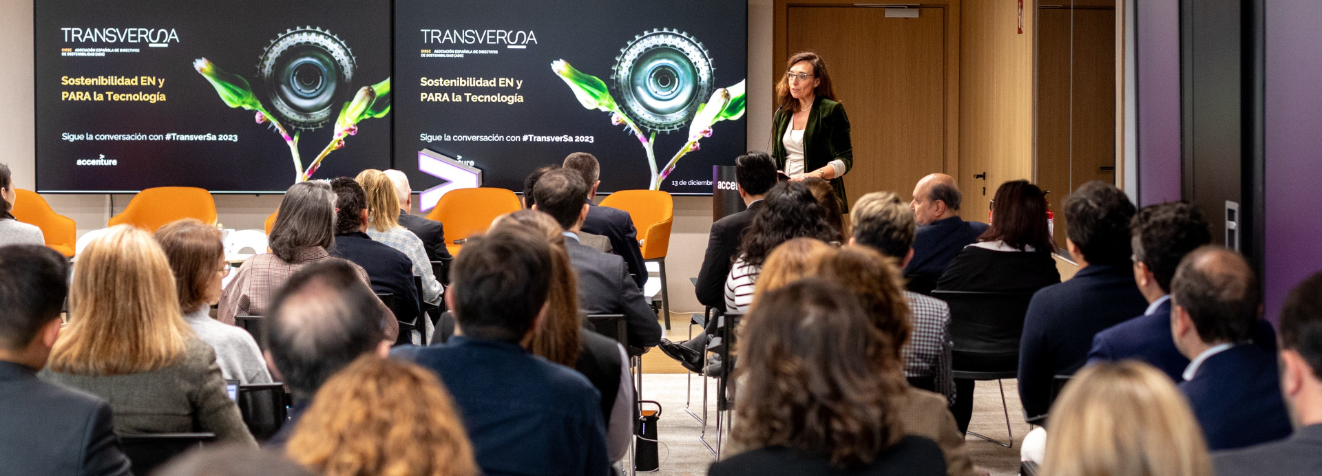Tras las diferentes ponencias de la jornada, Ángel Berniz, Luis Fuente e Ana Millán Chapado, todos de Accenture, destacaron algunas conclusiones y reflexiones del encuentro que servirán de base para un documento final que compartiremos próximamente. Ana Millán destacó la importancia de la reflexión de la sostenibilidad dentro de la tecnología y como la tecnología puede ayudar a la sostenibilidad, con ejemplos concretos de cómo se han podido agregar la sostenibilidad en la temática ASG.