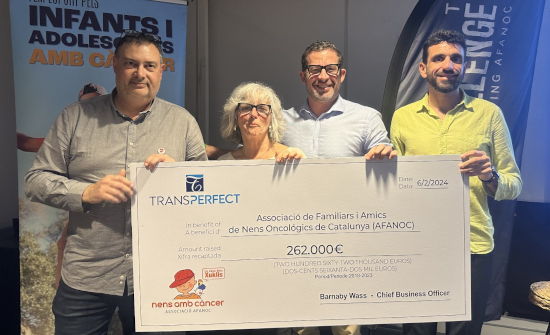 En el acto de presentación del calendario anual del TransPerfect Mountain Challenge, el Chief Business Officer de la compañía y miembro de la junta directiva de AFANOC, Barnaby Wass, hizo entrega del cheque por valor de 262.000 euros a la responsable de Marketing y Relaciones Externas de AFANOC, Maite Golmayo. “Desde nuestra asociación, y en nombre de todas las familias que pasan por el proceso oncológico de uno de sus hijos o hijas, tanto las que están alojadas en la Casa dels Xuklis o en los hospitales, no podemos sino agradecer un año más a TransPerfect, a Barnaby y a todo su equipo el trabajo y la dedicación para hacer del TransPerfect Mountain Challenge una iniciativa que, edición tras edición, sigue sumando cada vez a más gente que pone su granito de arena para mejorar la calidad de vida de todos estos niños y niñas y sus familias”, afirmó.