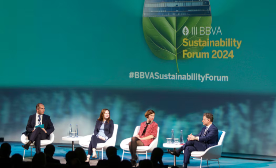 La tercera edición del BBVA Sustainability Forum es el primer evento celebrado en Ciudad BBVA, sede madrileña de la entidad, que ha obtenido la certificación E-089-24 de Eventsost como evento sostenible. Esta certificación, llevada a cabo en colaboración con auditores independientes, permite a las empresas certificar el cumplimiento de las buenas prácticas sostenibles más importantes aceptadas por la comunidad internacional de eventos.