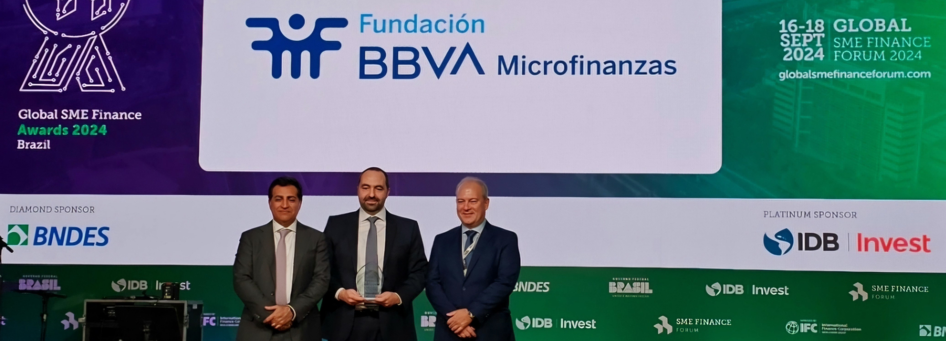 La ceremonia de entrega ha tenido lugar en Sao Paulo, Brasil, en el marco del Global SME Finance Forum, evento que reúne a líderes mundiales del sector financiero para debatir sobre el futuro de las micro y pequeñas empresas, en esta edición con el lema “El papel transformador de la IA en la aceleración de las transiciones digitales y sostenibles en las finanzas de las pymes”.