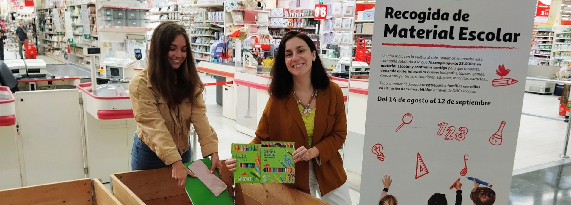 La campaña, que ha tenido una duración de cuatro semanas comprendidas entre el 14 de agosto y 12 de septiembre comenzó con una donación de Alcampo por más de 20.000 euros comprendidos en material como bolígrafos, lápices, gomas, cuadernos, pinturas, rotuladores, estuches, mochilas o carpetas, entre otros.