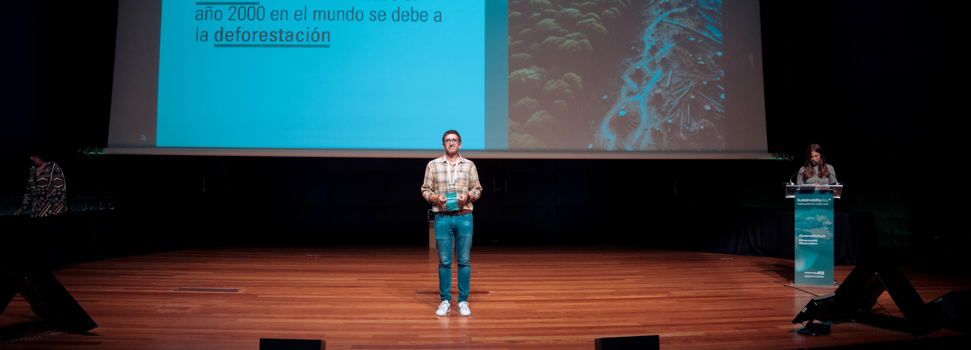 Jaime Manteca, Director de Proyectos de Copade, asistió al evento para recoger el reconocimiento y compartió que: “Es un proyecto, financiado por la Agencia Española de Cooperación Internacional, que consiste en hacer llegar a la sociedad el problema de la deforestación importada. España es, afortunadamente, un país donde la superficie boscosa ha aumentado en los últimos años, pero no ocurre lo mismo en otros países, sobre todo, en países tropicales. En este sentido, muchos de los productos que entran a la Unión Europea, como la madera o el cacao, vienen de zonas deforestadas. Con este proyecto, pretendemos comunicar a la ciudadanía y a las empresas este problema para que sepan cómo realizar los procesos correctamente y, así, avanzar hacia sistemas de importación más sostenibles. El objetivo es asegurarnos de que los productos que entran a la Unión Europea provienen de territorios sostenibles. La Unión Europea recientemente ha aprobado una directiva sobre productos libres de deforestación, que pretende erradicar este problema. Esta directiva va a ser rigurosa y complicada de poner en marcha, por eso, también trabajamos con las organizaciones productoras de Latinoamérica para que consigan adaptarse a ella”.