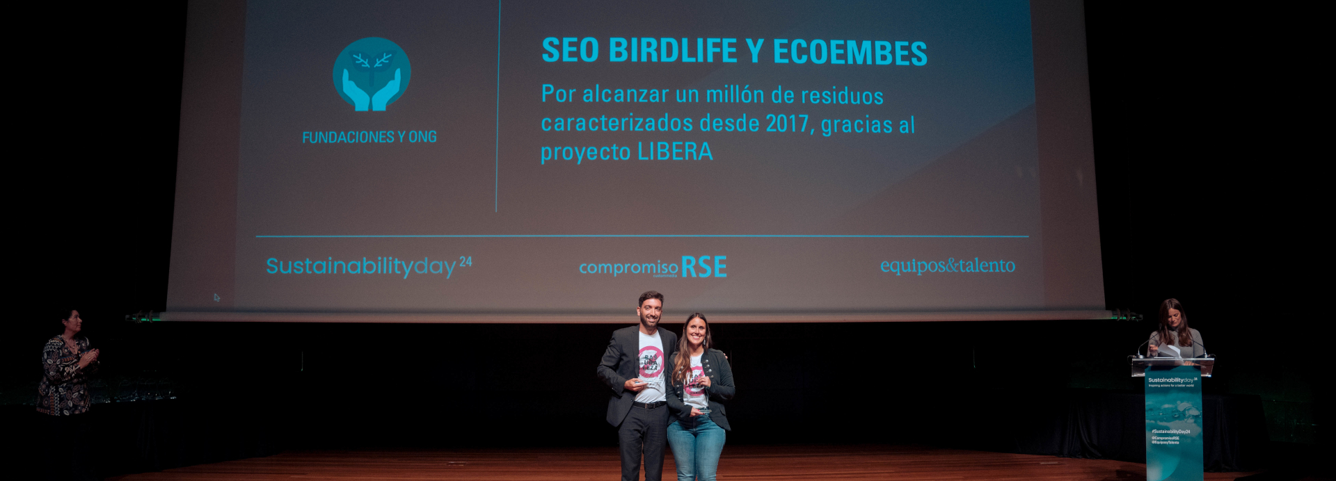 Alberto Remacha, Coordinador del Proyecto LIBERA de SEO BirdLife y Beatriz Barajas, Responsable Institucional del Proyecto LIBERA en Ecoembes, asistieron al evento para recoger el reconocimiento y explicar en qué consiste el proyecto. “Es un proyecto que pretende movilizar a la sociedad y concienciarla sobre el problema que supone el abandono de residuos en la naturaleza, lo que llamamos desde el proyecto: basuraleza. Tiene varias patas y una de ellas es la rama del conocimiento. En este sentido, hemos iniciado varias investigaciones en relación con la basuraleza para saber de qué manera afecta al entorno y a la sociedad. También, tenemos la rama de la prevención, donde lanzamos campañas de sensibilización para evitar que este problema siga adelante, a través de publicidad o campañas en colegios con nuestro programa de Aula LIBERA. Por último, contamos con la rama de la participación ciudadana, donde abordamos qué puede hacer la gente para sumarse a este movimiento y evitar el abandono de residuos en la naturaleza”, garantizó Alberto Remacha, Coordinador del Proyecto LIBERA de SEO BirdLife.