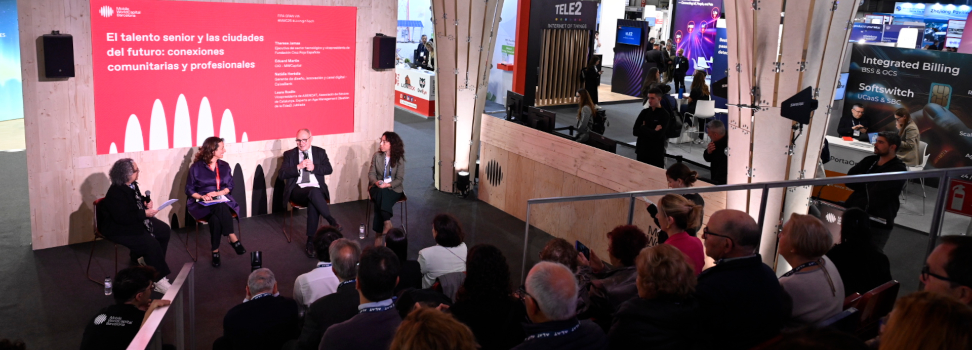 La jornada ha consistido en una mesa redonda protagonizada por Eduard Martín, Chief Innovation Officer de MWCapital, Therese Jamaa, vicepresidenta de la Fundación Cruz Roja España y Natalia Heredia, gerente de Diseño, Innovación y Canal Digital de CaixaBank. Durante el debate, que se ha desarrollado con la participación de un implicado público sénior, se han explorado las oportunidades que ofrece la tecnología para garantizar una inclusión socio digital efectiva, realizar diagnósticos fiables de áreas de actuación prioritarias y apoyar estrategias y programas institucionales dirigidos al fomento del talento senior. Además, se ha conversado sobre la adaptación del talento sénior al mercado laboral y se ha analizado la necesidad de reskilling para lograr una inclusión efectiva de este colectivo en las ciudades del futuro.