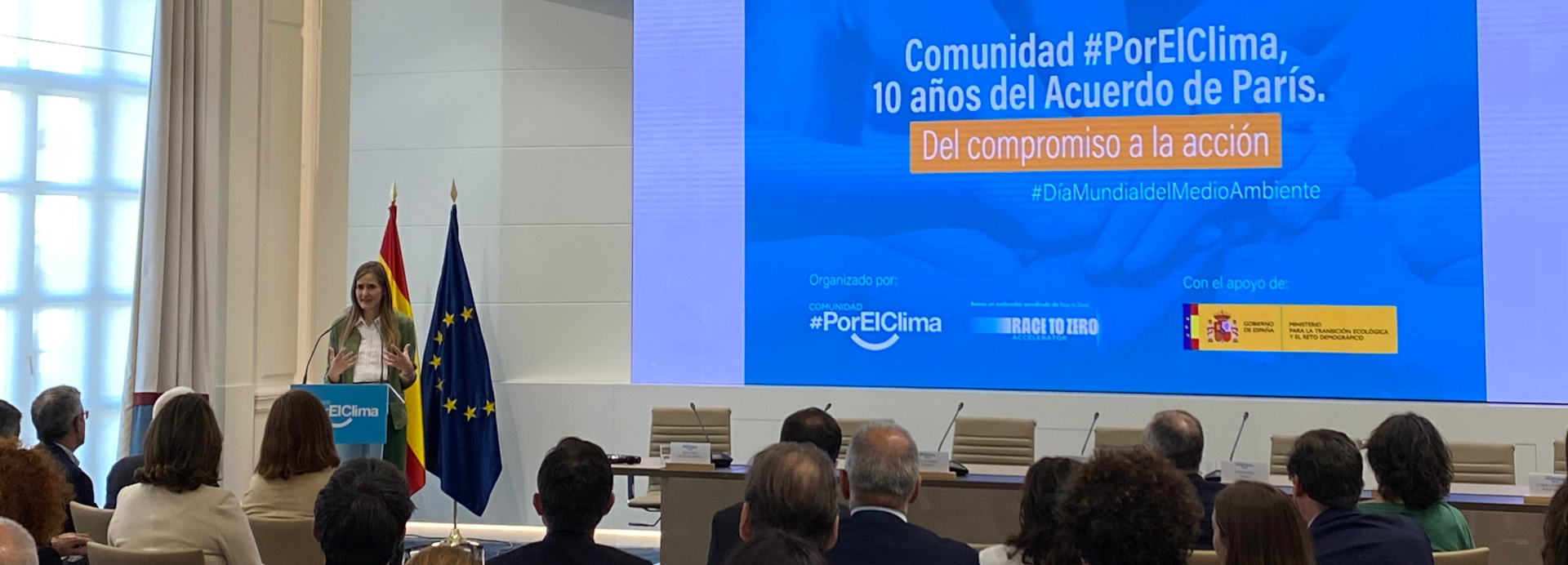 Por otro lado, la Comunidad #PorElClima es la única entidad española designada como Accelerator de Race to Zero, la campaña mundial liderada por los High Level Champions de las Naciones Unidas que moviliza a agentes no estatales en favor de una recuperación saludable, resiliente y con cero emisiones netas de carbono. Se trata de una distinción otorgada únicamente a 33 organizaciones de todo el mundo y que legitima su actividad como impulsor de la acción climática y la descarbonización de la economía. En este sentido, Camila Fernández, Engagement and EPRG Manager Race to Zero UN High Level Champion, recordó durante el acto que “hoy estamos en la era de la implementación. Con la misma convicción y optimismo que nos ha llevado a tener más del 90% del PIB mundial comprometido con la meta de cero emisiones netas, debemos ahora enfocarnos en transformar los sistemas. En este gran desafío, confiamos plenamente en los aceleradores y aliados de Race to Zero, como la Comunidad #PorElClima, que moviliza a la sociedad española y apoya a todos los actores en esta transición haciael futuro que queremos y necesitamos.”