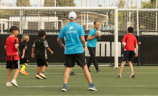 El ’Mes Social’ impulsa el deporte como mecanismo de empoderamiento y para transmitir los valores de trabajo en equipo. Así, en Valencia, los voluntarios de CaixaBank, en colaboración con Save the Children y la Fundación VCF, celebraron una jornada de fútbol solidario en la ciudad deportiva del Valencia CF, donde los niños y las niñas participantes vivieron la experiencia de sentirse verdaderos profesionales del balón. En Bilbao, y con motivo de la final del manomanista de pelota, cuatro niños y niñas de la Fundación Fidias se convirtieron en protagonistas del inicio de la gran cita deportiva vasca acompañando en el paseíllo inicial a los dos finalistas. Durante toda la jornada, los voluntarios de CaixaBank ayudaron al buen desarrollo de esta experiencia tan especial.