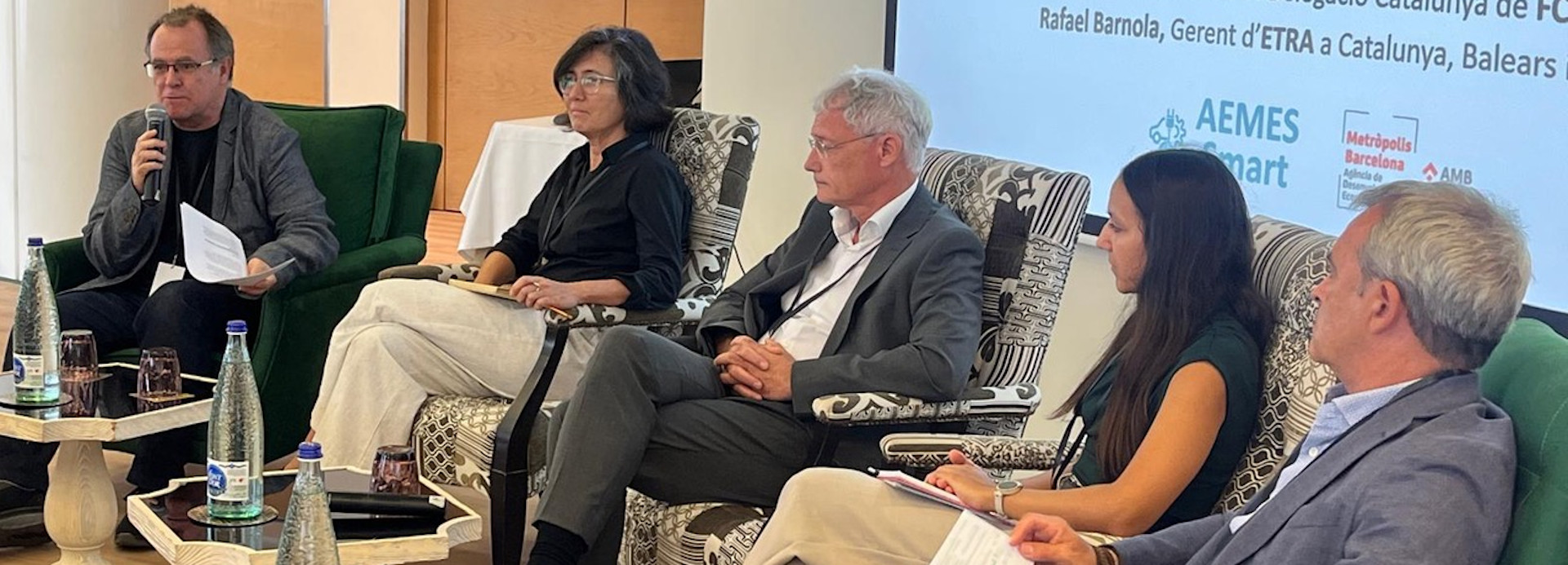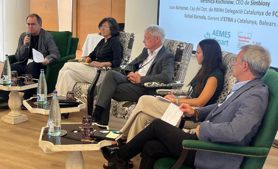 Finalmente, Ángel Tarriño se unió a la última mesa redonda "Generar, Captar y Retener el Talento Verd: Clave para la Sostenibilidad, la Competitividad y las Nuevas Oportunidades de Negocio”, con Francesc Teixidó, Business Development Manager & Formación a Empresa Eurecat, Enric Colomer, Jefe de estudios del centro Instituto Las Salinas y Montserrat Calvet, Directora de Formación de AEBALL y Comisión de Talento de AEMES Smart. Esta última explicó que a la dificultad de las empresas para encontrar profesionales específicamente formados se une que se integre la sostenibilidad en el talento ya presente a las empresas. AEMES está desarrollando diferentes herramientas y formaciones a medida a disposición de las empresas, que incluye la orientación profesional, un ámbito tradicionalmente asociado en situación de desempleo. También ha explicado que la asociación se ha constituido en Oficina de Eficiencia Energética para proveer información a las empresas.