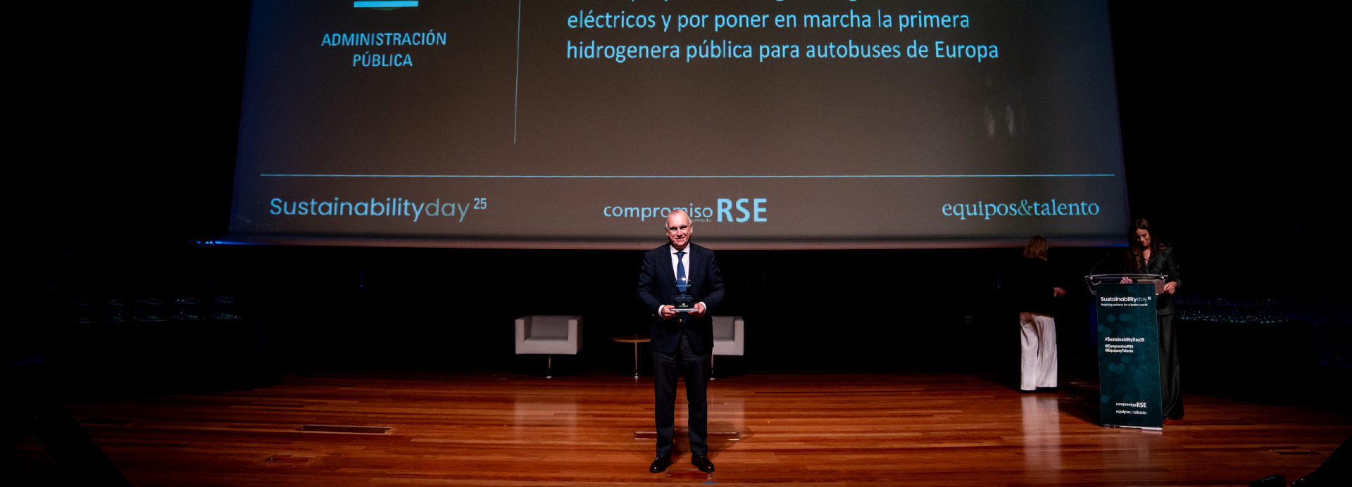 Borja Carabante, delegado del Área de Urbanismo, Medio Ambiente y Movilidad del Ayuntamiento de Madrid, recogió el premio y subrayó: “La EMT no es solo movilidad: es el principal instrumento para descarbonizar Madrid y mejorar el aire que respiramos”.