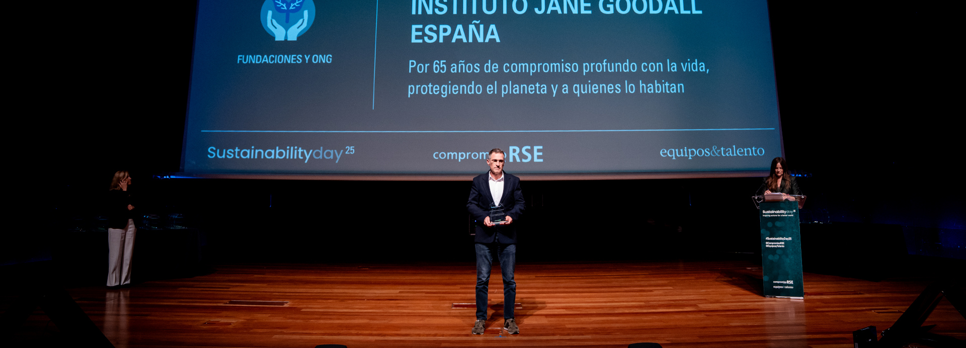 Ricardo Bacchini, Presidente de la Junta Directiva del Instituto Jane Goodall España, recibió el galardón y subrayó: “Este reconocimiento pone en valor la arquitectura del Instituto y nos anima a seguir trabajando por la sostenibilidad y la convivencia con las especies”.