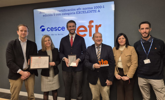 La entrega tuvo lugar hace unos días en la sede corporativa de la compañía, y contó con la participación del presidente ejecutivo de Cesce, Pablo de Ramón-Laca, y del director general de la iniciativa efr, Roberto Martínez, junto a representantes de Recursos Humanos y del equipo técnico del modelo.