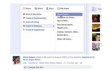 Los estadounidenses ya pueden declararse como donantes de órganos en su perfil de Facebook
